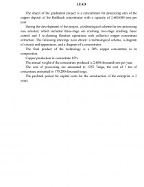 The object of the graduation project is a concentrator for processing ores of the copper deposit of the Balkhash concentrator with a capacity of 2,600,000 tons per year.