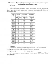9- Машғулот. Иқтисодий кўрсаткичларни башоратлашда эконометрик моделлардан фойдаланиш (2 соат)
