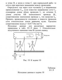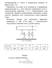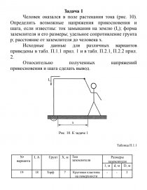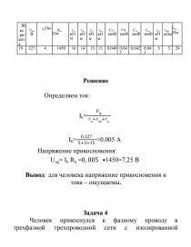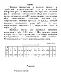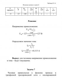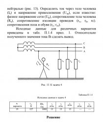 Исходные данные для различных вариантов приведены в табл. П.1.2 прил. 1. При решении задачи следует учесть, что сопротивления пола и обуви включены последовательно с сопротивление тела человека. Относительно полученного значения сделать вывод.