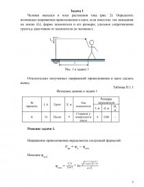 Человек оказался в поле растекания тока (рис. 2). Определить возможные напряжения прикосновения и шага, если известны: ток замыкания на землю (Iз); форма заземлителя и его размеры; удельное сопротивление грунта ρ; расстояние от заземлителя до человека х.