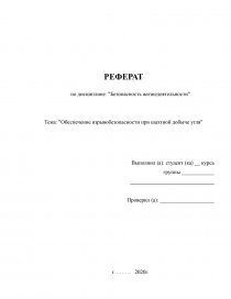 Тема: "Обеспечение взрывобезопасности при шахтной добыче угля"