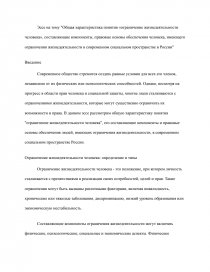 Эссе на тему "Общая характеристика понятия «ограничение жизнедеятельности человека», составляющие компоненты, правовые основы обеспечения человека, имеющего ограничения жизнедеятельности в современном социальном пространстве в России"