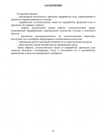 В курсовом проекте разработана технологическая линия по переработке колосниковой золы в минеральное удобрение. Выполнен подбор оборудования, входящего в технологическую линию. Произведён ряд расчётов, связанных с режимом работы технологической линии, производительностью оборудования и потребностью в энергетических ресурсах. Проведена оценка воздействия на окружающую среду и доказан положительный эффект от введения дополнительной технологической линии в процесс деревообработки.