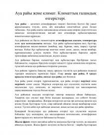Ауа райы жəне климат. Климаттың ғаламдық өзгерістері.