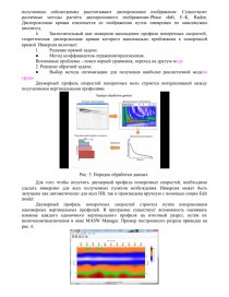 Однако, можно отметить следующие сложности, которые существуют при картировании сложнопостроенных объектов методом MASW. Во–первых, возможность выделения в сейсмическом поле различных геологических объектов зависит от соотношения их размеров с длиной сейсмической волны, поэтому при проведении таких работ очень важна наилучшая оптимизация системы наблюдений, т.е. необходимо обеспечить определенную глубинность исследований и сохранить нужную детальности при ограниченном количестве сейсмических каналов. Во–вторых, при пересечении зон вертикальных неоднородностей наблюденная дисперсионная кривая часто "рассыпается", выделить фундаментальную моду волны Рэлея становится сложно, высшие моды начинают доминировать на дисперсионном изображении (рис. 1).