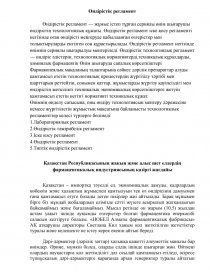 Дәрілік заттардың өнеркәсіптік өндірісін ұйымдастыру принциптері.Дәрілік заттарды өндіруді мемлекеттік реттеу.Өндірістік регламент