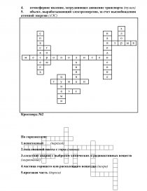 2 | Проверка знаний. Викторина. - Ребята, мы проведем урок-викторину по изученным темам. Класс разбивается на две команды. За каждый правильный ответ, команда получает жетон. В конце игры подсчитываем количество жетонов. Побеждает та команда, которая наберет больше всех жетонов. I этап викторины. Отгадка ребуса Ребята, перед вами шифровка. Из каждого слова берем только тот слог, который указан в коде, а затем все полученные результаты складываем в слова (Приложение 1) II этап викторины Кроссворд. Группы получают раздаточный материал с кроссвордом (приложение 2). Участники должны решить кроссворд путем заполнения пропущенных в предложениях слов. Возможна раздача нескольких экземпляров на группу, для удобства работы (2-4). Заполняется и сдается после этого только один экземпляр (заполняемый капитаном или ответственным, например). Раздаточный материал и кроссворд, соответственно, для всех групп одинаковы. После полного заполнения кроссворды сдаются учителю, определяется последовательность участия команд во втором этапе викторины (1, 2, 3). Результаты проговариваются или коротко обсуждаются. При неполном заполнении кроссворда командой(-ами) за отведенное время (макс. 9 мин., из расчета по 1 мин. на каждое слово по горизонтали) последовательность участия во втором этапе определяется по количеству заполненных полей (у кого больше верных слов); учитель говорит правильный ответ и объясняет его. III этап викторины. Ответы на вопросы. (приложение 3) Капитаны команд по очереди выбирают номер из списка предложенных. На обсуждение в группах и дачу ответа отводится до 1 мин. За правильный полный ответ полагается 2 жетона, за частично-верный – 1 жетон, за неверный ответ или его отсутствие - 0. При даче неверного или частично-верного ответа другим группам дается возможность дать или дополнить его и получить 1 или 2 жетона (дополнения осуществляются также в порядке очереди). При даче всеми группами неверных\неполных ответов на вопрос или при их отсутствии учитель показывает ответ и объясняет его. IV этап викторины- У природы нет плохой погоды (приложение 4) Каждая группа – это маленькая метеостанция, но задачи, которые вам предстоит решить, не совсем обычные для синоптиков: 1. По словесному описанию предсказать (определить) природное явление. 2. Перечислить последствия этого явления для человека. 3. Дать рекомендации одноклассникам (составить памятки) по безопасному поведению по время того природного явления, которое вы определили. | Работа в группах. Фронтальная беседа, рассказ учителя, объяснение (при необходимости). Работа в группах, работа со слайдами. Рассказ учителя, объяснение (при необходимости). | Слайды презентации. Слайды презентации. Слайды презентации. | 8-12 15-20 7-10 |