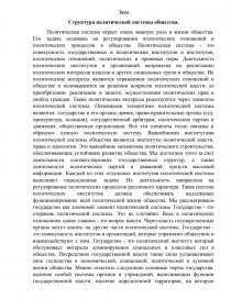 Политическая система играет очень важную роль в жизни общества. Его задача основана на регулировании политических отношений и политических процессов в обществе. Политическая система - это совокупность государственных и политических институтов и институтов, политических отношений, политических и правовых норм. Деятельность политических институтов и организаций направлена на реализацию политических интересов классов и других социальных групп в обществе. Их политические интересы являются отражением политических отношений в обществе и основываются на решении вопросов политической власти: ее приобретении, реализации и защите, осуществлении политических прав и свобод граждан. Такие политические интересы реализуются через элементы политической системы. Основными элементами политической системы являются: государство и его органы; армия, правоохранительные органы (суд, прокуратура, полиция); государственный арбитраж; политические партии и движения; общественные организации. Все эти элементы тесно связаны и образуют единую политическую систему. Важнейшими институтами политической системы общества являются институты политической власти, права и идеологии. Это важнейшие механизмы политического строительства, обеспечивающие устойчивое развитие общества. Мы достигаем этого за счет деятельности соответствующих государственных структур, а также деятельности политических партий и движений, средств массовой информации. Каждый из этих отдельных институтов политической системы выполняет определенные задачи. Их деятельность направлена на регулирование политических процессов различного характера. Такая система политических институтов должна обеспечивать надлежащее функционирование всей политической жизни общества. Мы рассматриваем государство как ключевой элемент политической системы. Государство - это стержень политической системы. Это не случайно. Ведь в политических отношениях самое главное - это вопрос власти. Через власть государственные органы могут влиять на другие части политической системы. Государство - это совокупность институтов и организаций, которые управляют обществом и взаимодействуют с ним. Государство - это политический институт, который обслуживает интересы доминирующих социальных и классовых сил в обществе. Посредством государственной власти такие силы устанавливают свое господство в экономической, социальной, политической и духовной жизни общества. Можно отметить следующие основные черты государства: наличие особой системы органов и учреждений, выполняющих функции государственной власти; наличие определенной территории, на которую распространяется юрисдикция этого государства; право государства устанавливать систему норм.