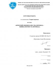 Целью данной курсовой работы является изучение эквивалентности перевода, как одного из критериев оценки качества перевода иностранных языков.