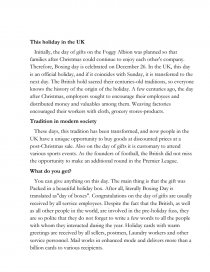 Now this holiday is often called the second Christmas day. But to a single version of the origin of this holiday so no one came. Too many sources are eager to appropriate authorship. In addition to the fact that employers gave their workers valuable things in every home and encouraged servants. The hosts also wanted to thank the servants for the good work during the year, gave gifts and provided a day off. The churches collected all the offerings that were received at Christmas and distributed the next day to all those in need. Well, the name of the Christmas gift in the UK echoes the name of the holiday. Hence the interesting version of the origin of the name. The fact is that on Christmas night in every family the child traditionally received a box with a gift. Children went to bed, and in the morning hurried to the tree in the hope of finding the cherished contents.