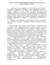 Ключевые слова: Нейросеть, искусственный интеллект, иностранный язык, цифровые технологии, платформы, улучшение навыков письма и говорения.