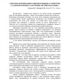 СПОСОБЫ ОПТИМИЗАЦИИ РАЗВИТИЯ НАВЫКОВ УСТНОЙ РЕЧИ СТУДЕНТОВ В ПРОЦЕССЕ ИЗУЧЕНИЯ АНГЛИЙСКОГО ЯЗЫКА