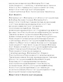 Қазақстан - Конституциясына сәйкес - президенттік басқару нысанындағы демократиялық, құқықтық, унитарлық, зайырлы республика. Бірінші Конституция 1993 жылдың қаңтарында қабылданды. Алайда, 1995 жылғы тамызда, ол жаңа Конституциямен ауыстырылды; 1998 жылы ол өзгертілді. , Атқарушы, заң шығарушы және сот: үкімет үш тәуелсіз филиалдарымен унитарлы демократиялық құқықтық мемлекет - жаңа конституция Қазақстан астында. Президент биліктің үш кез келген тиесілі емес және мемлекет ескі және еркін меңгерген, кем дегенде 15 жыл (яғни, қазақ тілі) үшін елде тұратын 40 жастан кіші емес Қазақстан Республикасы азаматтарының бес жылға сайланады. (Конституцияның III бөлім). Конституцияның Президентінің көзделген тәртiппен қалыптасады Үкіметінің, жүзеге асырады, атқарушы орган. (Конституция V бөлім). , Сот - сот iсiн жүргiзу, азаматтық, қылмыстық және басқа да нормативтік нысандары арқылы соттар жүйесі Заң шығарушы билік қос палаталы Парламент (- - 47 депутат және Мәжіліс 107 депутаттары Сенат) тиесілі болып табылады. Судьялар, Қазақстан Республикасы Конституциясының және осы Конституциялық заңмен және тұрақты негізде берілген өкілеттіктер сәйкес лауазымына сайланған немесе тағайындалған. Конституциялық Кеңес сот жүйесiн есепке алмай, Конституциялық Соттың функцияларын орындайды. Прокуратура биліктің үш билігінің бірде-біріне қарамай, мемлекеттік биліктің қадағалау органының функцияларына ие.