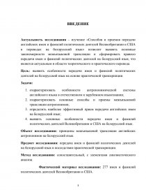 Актуальность исследования – изучение «Способов и приемов передачи английских имен и фамилий политических деятелей Великобритании и США в переводах на белорусский язык» позволит выявить основные закономерности межъязыковой трансляции и сформировать правило передачи имен и фамилий политических деятелей на белорусский язык, что является актуальным в области теоритического и практического перевода.