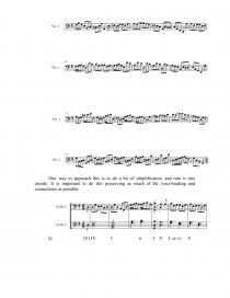 The next page is a really detailed analysis of the complete Sarabande, which tries to account for every note, either as part of the chord that’s labeled, or as a decoration (passing/neighbor notes etc.). There are a few places where I provide alternate analyses (especially the circle of fifths), as either solution seemed acceptable to me.