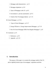 The purpose of this paper is to examine the mortgage market of the US and its rightfully distinct types, the mortgages’ originations and their characteristics. The report considers a topical issue of the economic activities in the field of American mortgages. The research and analysis are based on theoretical and empirical research methodologies. We, as authors of the work, analyze the perspective on American mortgage market values, relevant issues, including a special distinctive type of mortgage known as ‘the green mortgage’, potential future development, given the present-day world economic situation and the situation on the US mortgage market.