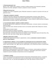 Организационный этап Вводный инструктаж Проверка домашнего задания Актуализация опорных знаний и умений Пробное применение знаний Упражнения по образцу Подведение итогов урока Домашнее задание | 2мин 3мин 7мин. 6мин 5мин 10мин 7мин 5мин | Словесный Словесный Практический Анализа Практический Тренинг Практический Анализа Тренинг Словесный Анализа словесный | Учебный журнал Слово педагога Рабочие тетради Слово педагога Упражнения Упражнения слово педагога слово уч-ся слово педагога слово педагога | Фронтальная Фронтальная Индивидуальная Групповая Групп. Фронтальная Фронтальная Фронтальная |