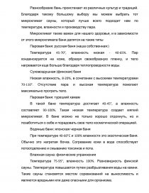 Температура 45-70°, влажность низкая - 40-65%. Пар конденсируется на коже, образуя своеобразную пленку, и тело нагревается еще больше благодаря теплопроводности воды.