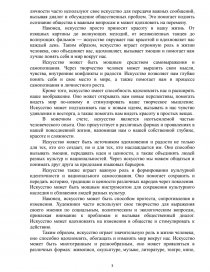 Искусство, во всех его проявлениях, имеет способность к преображению и вдохновению. Встреча с искусством не должна рассматриваться как простое развлечение, а скорее как труд души, который требует от нас внимания, открытости и глубокого погружения. Искусство является одним из самых мощных способов самовыражения и коммуникации. Художественные произведения могут передавать эмоции, мысли, идеи, и в то же время вызывать у зрителя размышления и новые взгляды на мир. Встреча с искусством требует нашего участия и вовлеченности, чтобы мы могли полностью погрузиться в мир художественного произведения и понять его глубинный смысл.