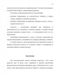 В начале 19 века в классической риторике произошел серьезный упадок, вызванный тем, что дисциплина растворилась в ряде схожих дисциплин. Единственной страной на мировом континенте, где произошел расцвет в риторике была Российская империя. Но, как официальная наука риторика не перестала существовать, поскольку ораторское искусство в определенных странах было востребовано, например: Германия и Франция. Социальные и политическое баталии, происходящие в европейских странах, способствовали появлению знаменитых ораторов не только судебного красноречия, но и революции. Однако все эти явления не были подвержены теоретическому анализу. Условия диктовали более модернизированный ракурс риторической теории, и он найден не был. В школьной программе риторику преподавали по теориям античных ученных, например: Аристотель он подчеркивал, что риторика представляет собой изобретение аргументов, которые позволяют не только украшать речь, но и разделять, также он свел риторику к мастерству украшательства. К 50-м годам 20 века в условиях новой социальной и политической обстановки возникает новое течение риторики – неориторика, первым ученным выдвинувшим теорию неориторики был бельгийский юрист Христиан Перельман, позже основавший брюссельскую школу.