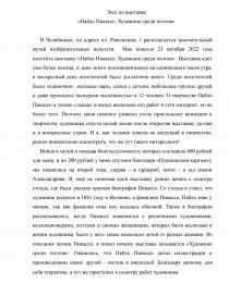 В Челябинске, по адресу пл. Революции, 1 располагается замечательный музей изобразительных искусств. Мне повезло 23 октября 2022 года посетить выставку «Пабло Пикассо. Художник среди поэтов». Выставка идёт уже более месяца, и день моего посещения выпал на одиннадцать часов утра, в воскресный день посетителей было достаточно много. Среди посетителей были «одиночки», молодые пары, семьи с детьми, небольшие группы друзей и даже проходила экскурсия численностью в 12 человек. О творчестве Пабло Пикассо я только слышал и видел несколько его работ в сети интернет, но не более того. Поэтому меня немного удивило столь пристальное внимание к творчеству художника спустя целый месяц после открытия выставки, да ещё и в воскресенье утром. И я, как человек совсем не сведущий в творчестве, решил внимательно посмотреть, что же тут такого интересного!