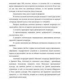 В системе изучений античной культуры возникает и такого рода аспект исследования, как изучение античных традиций и их воздействия на мировую литературу. Данный подход станет рассмотрен и в этой работе.