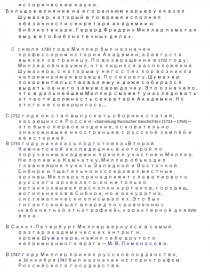 - 1 июля 1730 года Миллер был назначен профессором истории Академии, а 2 августа выехал за границу. По возвращении в 1732 году, Миллер обнаружил, что лишился расположения Шумахера, с которым у него с тех пор возникла непримиримая вражда. По секрету, Шумахер покровительствовал ему и даже собирался выдать за него замуж свою дочку. Это означало, что в дальнейшем Миллер сможет унаследовать от тестя должность секретаря Академии. Но этого не совершилось…