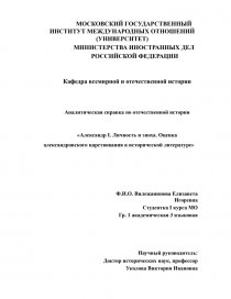 «Александр I. Личность и эпоха. Оценка александровского царствования в исторической литературе»