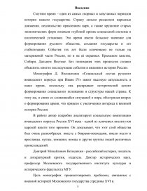 Монография Д. Володихина «Социальный состав русского воеводского корпуса при Иване IV» разделена на три главы, каждая из которых посвящена изучаемой проблеме. Глава «Военная элита в составе Московского государства в середине XVI в.», которой уделено внимание в данном реферате, является второй. В предыдущей, первой, главе разбирается историография по поднятой проблеме, а в следующей, третьей, - социальный состав опричных воевод.