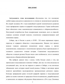 Сибирь, как и Россия в целом, в XVIII - ХХ веках переживала период перехода от аграрного общества к индустриальному. Именно этот процесс являлся главным движущим механизмом жизни страны, а прочие экономические, социальные и политические процессы были производными от основного сущностного течения истории. Становление индустриального общества в каждом регионе России имело свои особенности, хотя в основном определялось общероссийскими факторами.