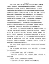 Актуальность - Крымская (Восточная) война 1853-1856 гг. является одним из важнейших событий в истории России XIX века. Она оказала значительное влияние на дальнейшее развитие страны, став жестоким напоминанием о необходимости проведения коренных преобразований для ликвидации отсталости от западных стран. Эта война стала также событием мирового масштаба, поскольку в нее были вовлечены наиболее крупные и могущественные державы того времени. Некоторые исследователи даже полагают, что есть основания считать Крымскую войну мировой. Как и любое масштабное и значимое событие, Крымская война вплоть до настоящего времени остается в центре внимания исследователей, и не выработано единого мнения относительно ее причин, характера, значения и т.д. Данный факт подтверждает актуальность темы данной работы.
