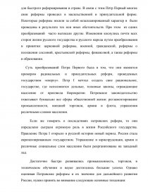 В истории России было много парителей, которые поднимали страну, выводили её на новый уровень, делали так, что Россия становилась великой державой. Одним из этих правителей был Пётр I. Благодаря своей деятельности Россия, в начале XVIII века стала одной из великих стран в мире. В результате петровских реформ новое появлялось повсюду - в экономике и науке, в культурной жизни и в быту, в структуре государственного аппарата и управления, создании новой армии и флота, во внешней политике. В данном эссе будут рассмотрены основные предпосылки причины и последствия петровских преобразований.