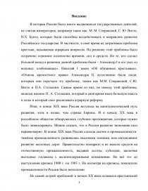 В истории России было много выдающихся государственных деятелей, не считая императоров, например такие как: М. М. Сперанский, С. Ю. Витте, Н.Х. Бунге, которые были способны воздействовать и направлять развитие Российского государства. В частности, в своё время их затрагивала проблема крестьян, называемая аграрным вопросом. На решение этой проблемы было потрачено огромное количество времени, сил и средств. Но те, кто сделал большой вклад в решении данной проблемы были – Александр I и его указ «о вольных хлебопашцах», Николай I закон «Об обязанных крестьянах», «Отмена крепостного права» Александра II, естественно были люди, которым они поручали эту проблему, таким как М.М. Сперанский, С.Ю. Витте и П.А. Столыпин. Самым ярким из них, по поводу этой проблемы, являлся именно П. А. Столыпин, который в своё время имел большую власть и силы и который смог реализовать аграрную реформу.