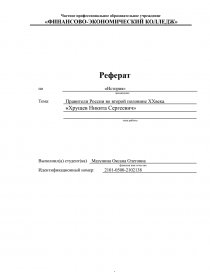 Правители России во второй половине ХХвека. «Хрущев Никита Сергеевич»