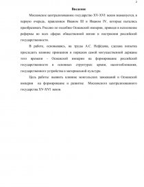 В работе, основываясь, на труды А.С. Нефёдова, сделана попытка проследить влияние принципов и порядков самой могущественной державы того времени - Османской империи на формирование российской государственности в основных структурах: армии, налогообложения, государственного устройства и материальной культуре.