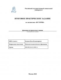 История выполняет несколько социально значимых функций. Первая – познавательная, интеллектуально развивающая, состоящая в изучении исторического пути стран и народов, в отражении всех явлений и процессов, составляющих историю человечества.