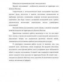 Предмет исследования – особенности палеолита на территории юга Дальнего Востока.
