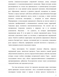 Общими чертами городской культуры, отличающими ее от сельской, выступают такие признаки, как высокая плотность застройки городской территории; наличие большого числа транспортных магистралей социокультурного (дворы, улицы, проспекты, площади, парки) и инженерного (шоссе и транспортные развязки, железнодорожные узлы и вокзалы, водопроводные и телекоммуникационные сети) назначения. Отличительной особенностью городской культуры выступает одиночество в толпе, возможность долго ни с кем не общаться, замена личных контактов телефонными звонками, возможность почти бесконтрольно заниматься сомнительными и преступными делами. Характерная черта городской жизни и городской культуры - транспортная усталость, возникающая вследствие ежедневных переездов на большие расстояния и тесноты в общественном транспорте. Нервные перегрузки могут вызываться также более напряженным, чем на селе, и равномерным трудовым ритмом, стоянием в очередях, ажиотажным спросом и дефицитом, митингами и демонстрациями, постоянным нахождением в толпе (на улицах, в транспорте, магазинах).