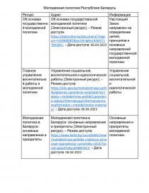 Молодежная политика в Беларуси: основные направления и приоритеты | Молодежная политика в Беларуси: основные направления и приоритеты [Электронный ресурс]. – Режим доступа: https://www.belta.by/roundtable/view/molodezhnaja-politika-v-belarusi-osnovnye-napravlenija-i-prioritety-1472/?ysclid=lg4o47s0yq394847615. – Дата доступа: 06.04.2023 | Основные направления и приоритеты молодежной политики. |