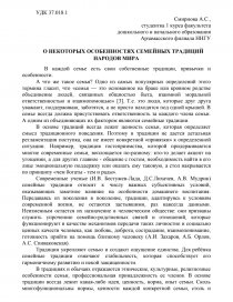 О НЕКОТОРЫХ ОСОБЕННОСТЯХ СЕМЕЙНЫХ ТРАДИЦИЙ НАРОДОВ МИРА