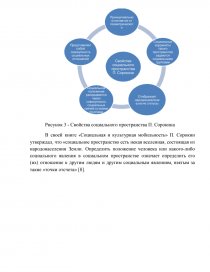 Г. Зиммель в монограмме «Социология пространства» под социальным пространством понимал «систему взаимодействий, взаимосвязей, активных социальных практик». В его понимании пространство социально, потому что оно освоено человеком. Зиммель утверждает, что есть некие «качества пространства», которые позволяют, так сказать, покрепче связать себя с той или иной его «частью», почувствовать «солидарность» с ним. Это возможно только тогда, когда есть собственно «кусок», т. е. когда есть ограничение, граница [5.С.107]. Он выделяет пять основных качественных характеристик социального пространства представленных на рисунке 1.