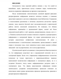 Отличительной чертой сегодняшнего этапа развития общества является то, что информация существует как в традиционной печатной, так и в электронной форме. Более того, современные информационные технологии позволили не только приступить к широкомасштабному переводу накопленной человечеством информации в электронную форму, но и к созданию большого числа новых информационных ресурсов сразу в электронном виде. Эта форма представления информации помимо значительного ускорения коммуникативных процессов позволяет на качественно новом уровне организовать процессы производства, хранения и распространения информации.