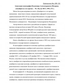 Аннотация монографии Владимира Александровича Фёдорова «Декабристы и их время». – М.: Изд-во МГУ, 1992.-272 с.