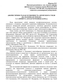 АФОРИСТИЧНОСТЬ КАК ОСОБЕННОСТЬ АВТОРСКОГО СТИЛЯ