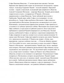 Софья Павловна Фамусова - 17 летняя прелестная девушка. Светская барышня знает французский, играет на музыкальных инструментах, хорошо танцует. Александр Андреевич Чацкий – молодой дворянин. Передовой человек – гордый, остроумный, осуждающий нрав дворянского общества. Алексей Степанович Молчалин – секретарь Фамусова. Хитрый, расчетливый, старается всем угодить и понравиться. И Чацкий, и Молчалин неравнодушны к дочери Фамусова. Таков любовный треугольник у Грибоедова. Чацкий давно любит Софью и не подозревает, что она разлюбила его. Теперь Софья влюблена в Молчалина. Софья увидела в трусливой робости Молчалина, благородство и возвышенность его души. Начитавшись, сентиментальных французских романов, Софья приняла его угодливость за глубокую трепетную любовь. Фантазиями она создала совой образ любимого, не разглядев его рабской сущности. После трехлетнего пребывания за границей Чацкий возвращается в дом Фамусова. Полный надежд, влюбленный в Софью, он приехал с серьезными намерениями. Но Софья совершено по-другому смотрит на их детские взаимоотношения. Ее сердце занял Молчалин. Софья при первой их встречи дала понять Чацкому, что с прошлым все покончено. О Чацком она говорит: «Остёр, умен, красноречив, в друзьях особенно счастлив…». И она же обижено заявляет: «Ах! Если любит кто кого, зачем ума искать и ездить так далёко?» Образы Чацкого и Молчалина – противоположены. Чацкий умен, честен, защищает свои интересы. Молчалин добивается расположения Софьи обманом, всегда задумывается, как отреагирует свет. Это двуличный герой, который любит «в угоду дочери такого человека». Софья для Чацкого часть Фамусовского общества, которого он не понимает и не принимает. Он рекомендует Софьи помириться с Молчалиным, которого она разоблачила. Чацкий говорит: «Муж-мальчик, муж-слуга, из жениных пажей - высокий идеал Московских всех мужей». Грибоедов противопоставляет образы героев любовников. Одного «Фамусовское общество отвергает, а другого принимает». Отъезд Чацкого в заключение комедии – вот развязка любовного конфликта.