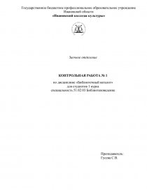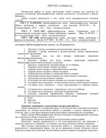 Контрольная работа по курсу представляет собой задания для студентов по методике составления библиографических записей документов, поступающих в фонды библиотек.