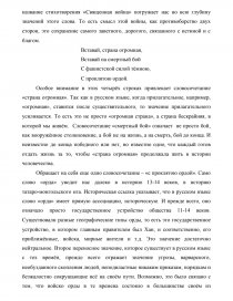 Анализируя текст песни, нельзя не задуматься над тем, как простыми словами можно сказать о самом важном, о том, что является самым ценным для каждого человека. В названии песни главенствующую роль берёт на себя слово «священная». Почему? С точки зрения истории для 40-х годов использование слова «священный» очень нехарактерно, так как это был период атеизма, антирелигиозных настроений. И поэтому, когда мы говорим «священная война», мы сразу же понимаем, что речь идёт об очень важных явлениях в жизни человека и других слов не найти.