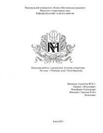 Письмова робота з дисципліни «Світова література»