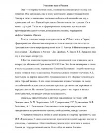 В России элементы торжественной и религиозной оды появились уже в литературе Московской Руси конца XVI-XVII вв. Это были панегирики и стихи в честь выдающихся лиц, «привества» Симеона Полоцкого. Но собственно ода вошла только в эпоху классицизма. Родоначальником ее принято считать А.Д. Кантемира, но термин введен В.К. Тредиаковским в его «Торжественной оде о сдаче города Гданска». В его «одах похвальных и божественных» на смену силлабической системе стихосложения приходит ритмическая, перенятая из народных песен. По мнению Тредиаковского, ритм – это «душа и жизнь» стихосложения, он придает стихам музыкальность.