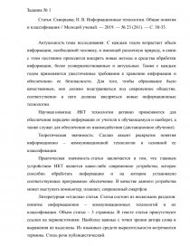 Литературная «отделка» статьи. Статья состоит из нескольких разделов: понятие информационно – коммуникационных технологий и их классификация. Объем статьи – 3 страницы. В тексте статьи присутствуют ссылки на первоисточники. Наиболее важные с точки зрения автора слова и выражения не выделены. Из языковых средств выразительности встречаются термины. Стиль речи публицистический.